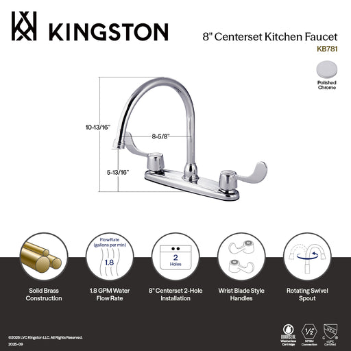 Kingston KB781 Vista Two-Handle 8" Centerset Kitchen Faucet, Polished Chrome Seamlessly interweaving elements from both modern and classic desig...