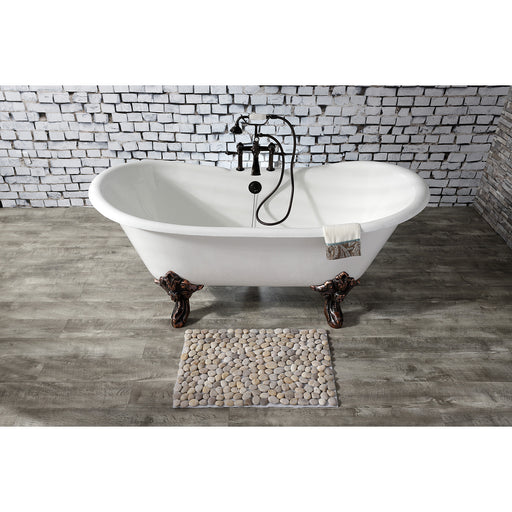 Aqua Eden VCT7D6728NH5 67" Cast Iron Oval Double Slipper Clawfoot Tub (7" Faucet Drillings), White/Oil Rubbed Bronze Surround yourself with the ...
