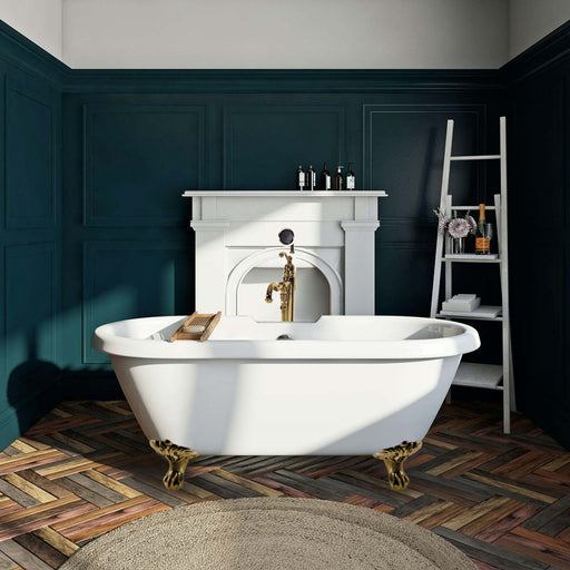 Aqua Eden VTDS672924JNH7 67" Acrylic Oval Double Ended Clawfoot Tub (No Faucet Drillings), Glossy White/Brushed Brass Surround yourself with the...