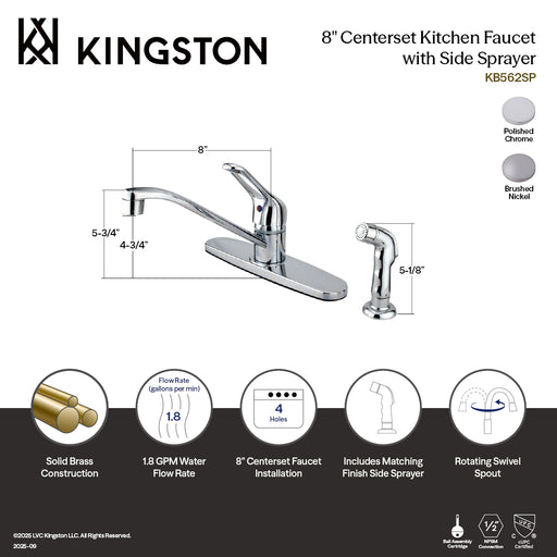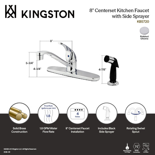 Kingston BrassKingston KB5720SP Single-Handle 8" Centerset Kitchen Faucet with Side Sprayer, Polished Chrome The exquisite design of this faucet tastefully fl...
