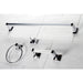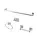 - 4-piece set includes: 24" towel bar, towel ring, robe hook, and toilet paper holder