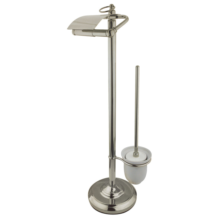 Kingston Brass CC2018 Pedestal Toilet Paper Holder Stand with Brush, Brushed Nickel