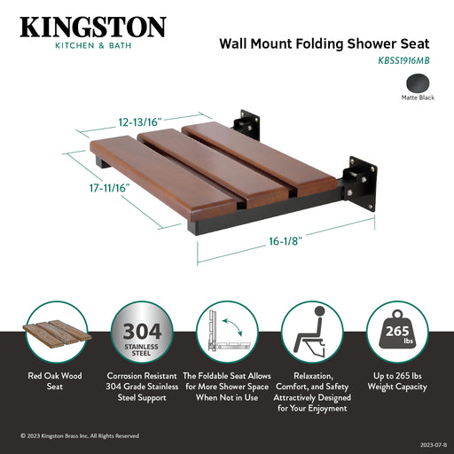Kingston BrassKingston Brass KBSS1916MB Chaise 19" x 16" Wall Mount Folding Shower Seat, Matte Black The Chaise wall mount fold down shower seat is the ideal ...