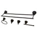 - 5-piece set includes: 30" double towel bar, towel ring, 2 robe hooks, and toilet paper holder