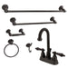Kingston Brass KBK3615AL Double-Handle 4" Centerset Bathroom Faucet with 5-Piece Bathroom Accessories, Oil Rubbed Bronze
