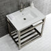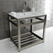 Kingston Brass VWP3122A8 Quadras 31" Ceramic Console Sink with Steel Base and Shelf (1-Hole), White/Brushed Nickel