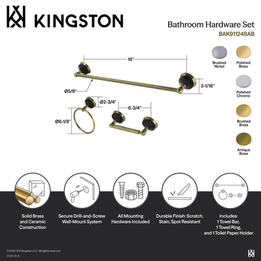 Kingston BrassKingston Brass BAK911248BN Water Onyx 3-Piece 18" Towel Bar Bathroom Accessory Set, Brushed Nickel This all inclusive set of bathroom accessorie...