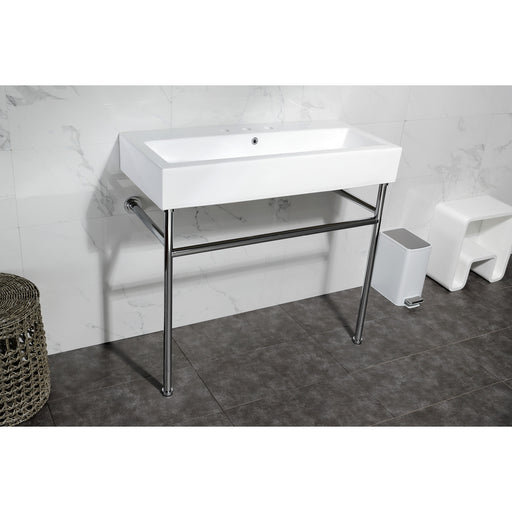 Kingston BrassKingston Brass VPB3917W8ST New Haven 39" Porcelain Console Sink with Stainless Steel Legs (8-Inch, 3-Hole), White/Brushed Nickel With a beautifu...