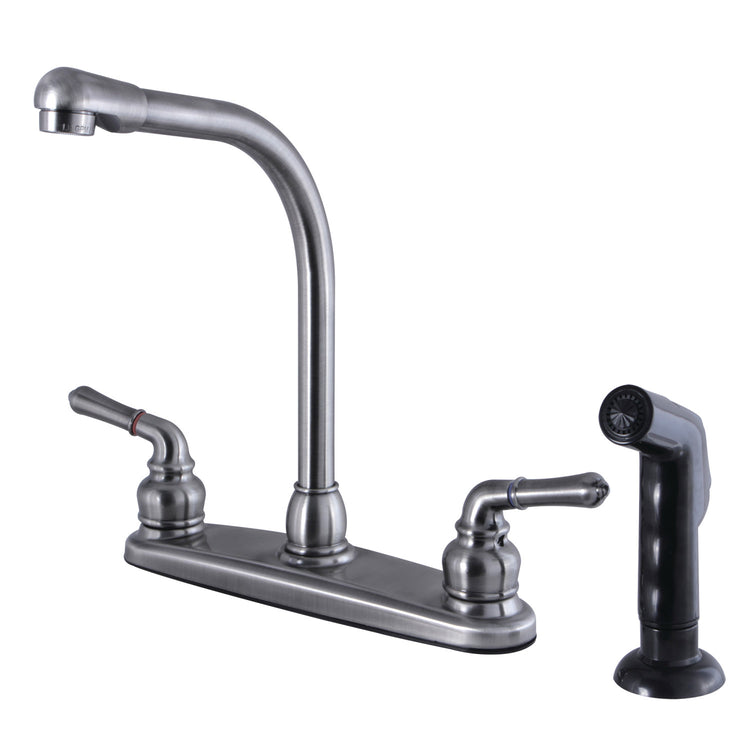 Kingston FB754SP Americana Two-Handle 8" Centerset Kitchen Faucet with Side Sprayer, Black Stainless