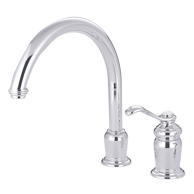 This faucet is the perfect embodiment of the traditional portrait of early American stylings. Able to fit a variety of sink set-ups, widespread kitchen faucets can be utilized in several multi-hole configurations. These are ideal for larger kitchens, as they are more spread apart, and feature a 2-hole installation. The polished chrome finish will also add a glistening elegance to your kitchen ensemble. Allow the brass construction to provide a sturdy and reliant fixture. Matching accessories are available for use.