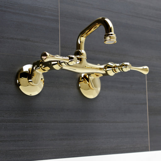 Kingston BrassKingston Brass KS312PB Kingston Double-Handle Wall Mount Bar Faucet, Polished Brass Designed to intertwine understated design with practical fun...