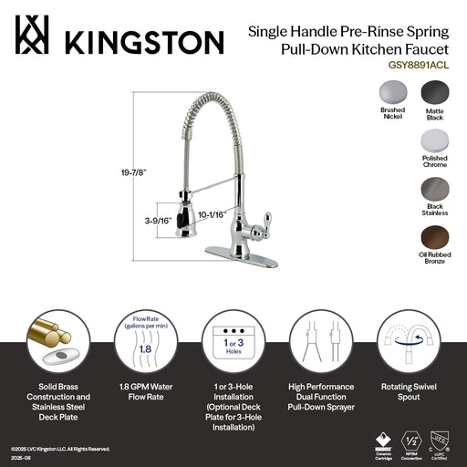 Kingston BrassGourmetier GSY8885DL Concord Single-Handle Deck-Mount Pre-Rinse Kitchen Faucet, Oil Rubbed Bronze This faucet boasts bold, sleek design with its...