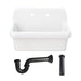 Transform your kitchen with this stylish wall-mounted service sink from the Petra Galley Collection! Originally designed for utility, this sink is now a trendsetter, serving as a stunning focal point for those seeking a charming farmhouse aesthetic. This exquisite single bowl ceramic sink marries timeless elegance with unparalleled functionality. Its glossy enameled finish and sturdy ceramic construction not only enhance your kitchen’s look but also provide a durable, high-performance workspace. With a spacious 26-7/8” x 14-5/16” bowl and a depth of 9-3/16”, you’ll have plenty of room to tackle any kitchen task. Plus, it comes pre-drilled for easy installation of a wall-mounted faucet at 8” center-to-center. Upgrade your kitchen style and functionality today!
