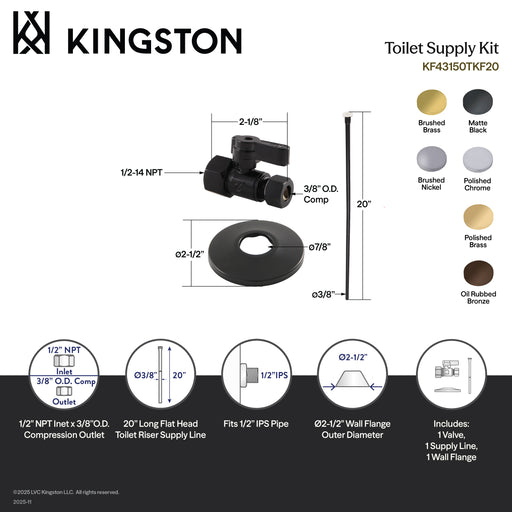 Kingston BrassKingston Brass KF43155TKF20 Toilet Supply Kit, 1/2" FIP x 3/8" OD Comp Straight Valve, Oil Rubbed Bronze This 3-piece toilet supply kit from Kin...