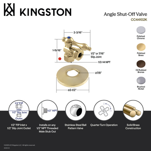 Kingston BrassKingston Brass CC44105K 1/2" FIP x 1/2" or 7/16" Slip Joint Quarter-Turn Angle Shut-Off Valve with Flange, Oil Rubbed Bronze Kingston Brass shut...