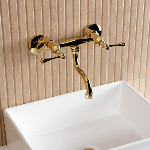 Kingston Brass KS2112BL Kingston Double-Handle Wall Mount Bathroom Faucet, Polished Brass Designed to intertwine exceptional soundness with magn...