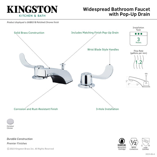 Kingston BrassKingston Brass GKB931B Vista Widespread Bathroom Faucet with Pop-Up Drain, Polished Chrome The exquisite design of this faucet tastefully flatte...