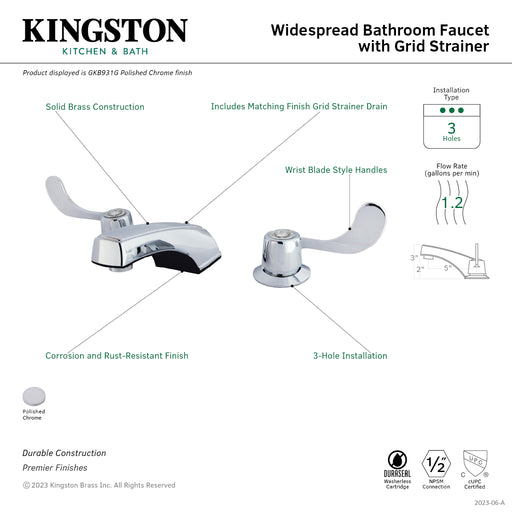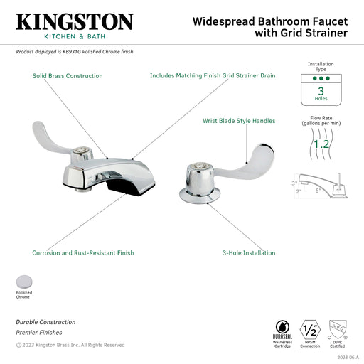 Kingston BrassKingston Brass KB931G Vista Widespread Bathroom Faucet with Grid Strainer, Polished Chrome The exquisite design of this faucet tastefully flatte...