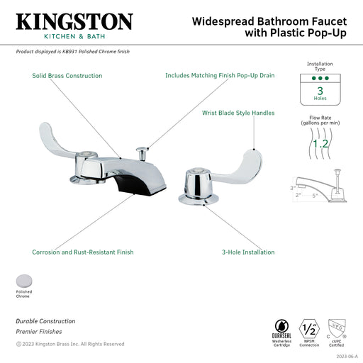Kingston BrassKingston Brass KB931B Vista Widespread Bathroom Faucet with Pop-Up Drain, Polished Chrome The exquisite design of this faucet tastefully flatter...