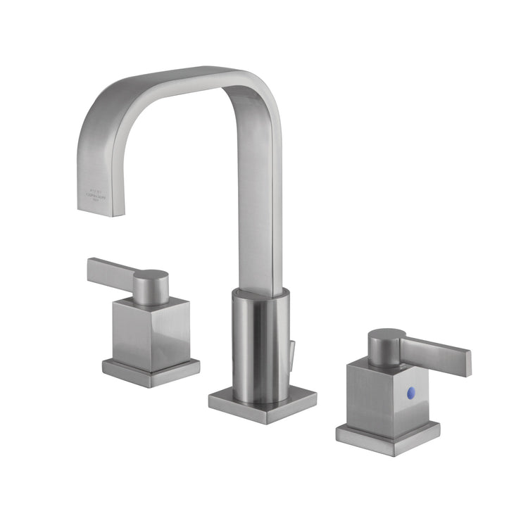 This faucet's modern features create a bold and edgy design in your bathroom. Ideal for more spacious bathrooms, widespread faucets are more spread apart and feature a 3-hole installation. The Meridian 8-inch widespread bathroom faucet and its featured sturdy brass construction and premium brushed nickel finish are guaranteed to glamorize your home's modern ensemble for years to come. A matching finish drain is also included.