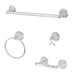 - 4-piece set includes: 24" towel bar, towel ring, robe hook, and toilet paper holder