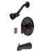 Complete with an easy-to-turn lever handle, an optimum bathing experience awaits. Enjoy the sturdy brass construction and premium oil rubbed bronze finish for a fixture that will last for years to come. This tub and shower faucet tastefully interweaves top-notch ergonomic design and the sheen of contemporary simplicity with its black neoprene accents. A pressure balanced valve is included for safety and protection against accidental burns.