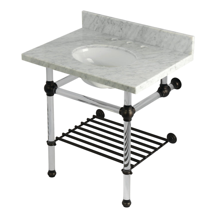 Kingston Brass KVPB3030MAB5 Templeton 30" Carrara Marble Console Sink with Acrylic Legs and Shelf (8-Inch, 3-Hole), Carrara Marble White/Oil Rubbed Bronze