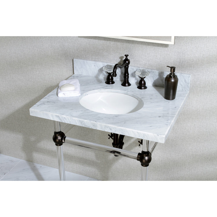 Kingston Brass KVPB30MA5 Templeton 30" Carrara Marble Vanity Top with Acrylic Legs (8-Inch, 3-Hole), Carrara Marble White/Oil Rubbed Bronze