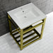 Kingston Brass VWP2522A7 Quadras 25" Ceramic Console Sink with Steel Base and Shelf (1-Hole), White/Brushed Brass